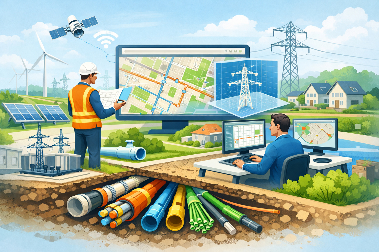 The networks of cables and pipelines form the foundation of our energy supply and urban development. Electricity, gas, water, and telecommunications are delivered to homes and businesses via complex underground infrastructures. Using geoinformation, these networks can be accurately mapped and analyzed, giving network operators and engineers insight into the location, capacity, and development of infrastructure.